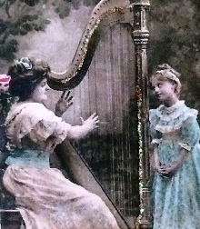 Jag använder glitterlim ofta, jag brukar då rama in valda delar i ett kort. Man kan även förstärka delar av en bild, t.ex som jag gjort med harpan på denna bild: